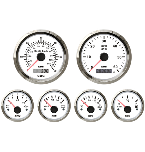 6-tlg. Instrumentenset von KUS für Benzin-Innenborder in weiß (EU-Norm) mit folgenden Instrumenten: