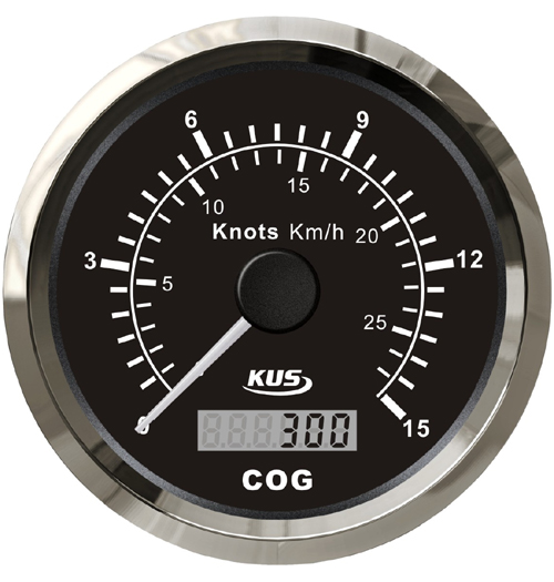 KUS GPS-Geschwindigkeitsanzeige bis 15 Knoten und 28 km/h, schwarz mit Edelstahllünette