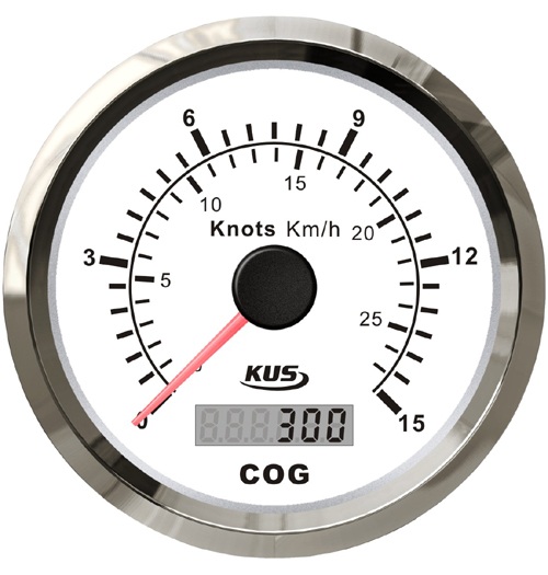 KUS GPS-Geschwindigkeitsanzeige bis 15 Knoten und 28 km/h, weiß mit Edelstahllünette