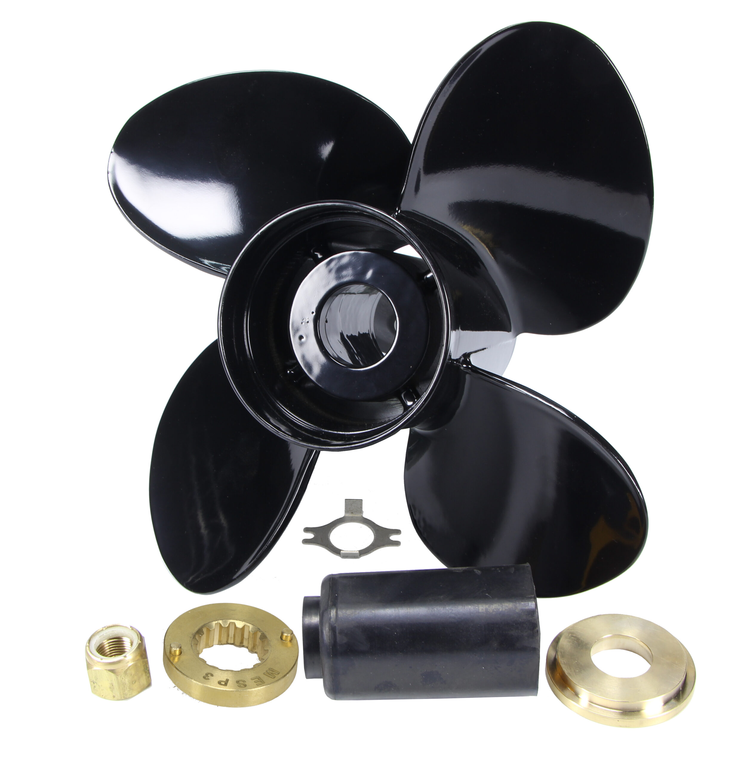 4-Blatt-Aluminiumpropeller 13 x 17 rechtsdrehend inkl. Nabenkit mit Propellermutter und Sicherungsblech für folgende Mercruy Außenborder mit 15 Zähnen auf der Propellerwelle: