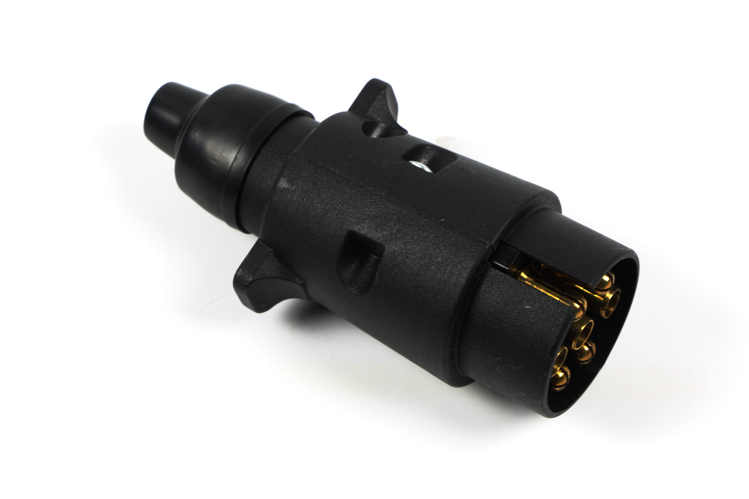 7-poliger Stecker aus Kunststoff für die Trailersteckdose. Die Adern des Kabels werden mit Schraubanschlüssen verbunden.