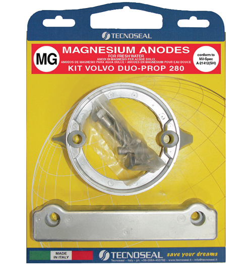 Anodensatz von Tecnoseal aus Magnesium passend für Volvo Penta AQ280 Duoprop.