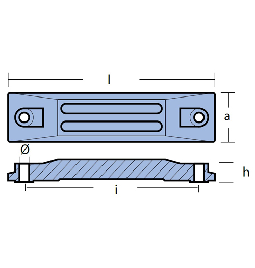 Aluminiumanode für die Verwendung im Salz- und Brackwasser zur Montage an der Antiventilationsplatte.