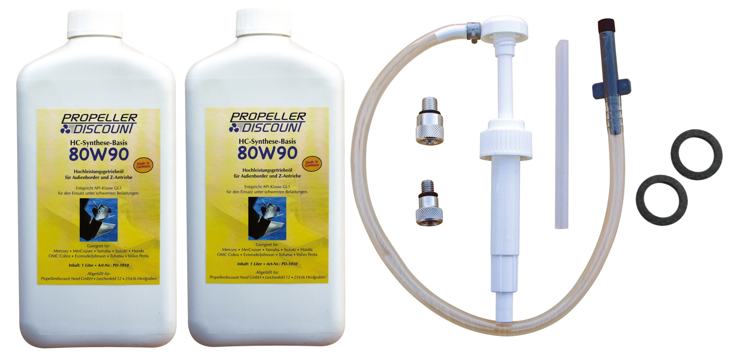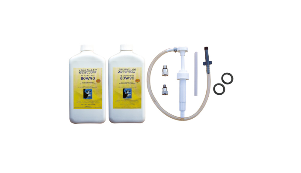 Abgefüllt in Kunststoffflasche mit Halsanschluss passend für Propellerdiscount Getriebeölpumpe.